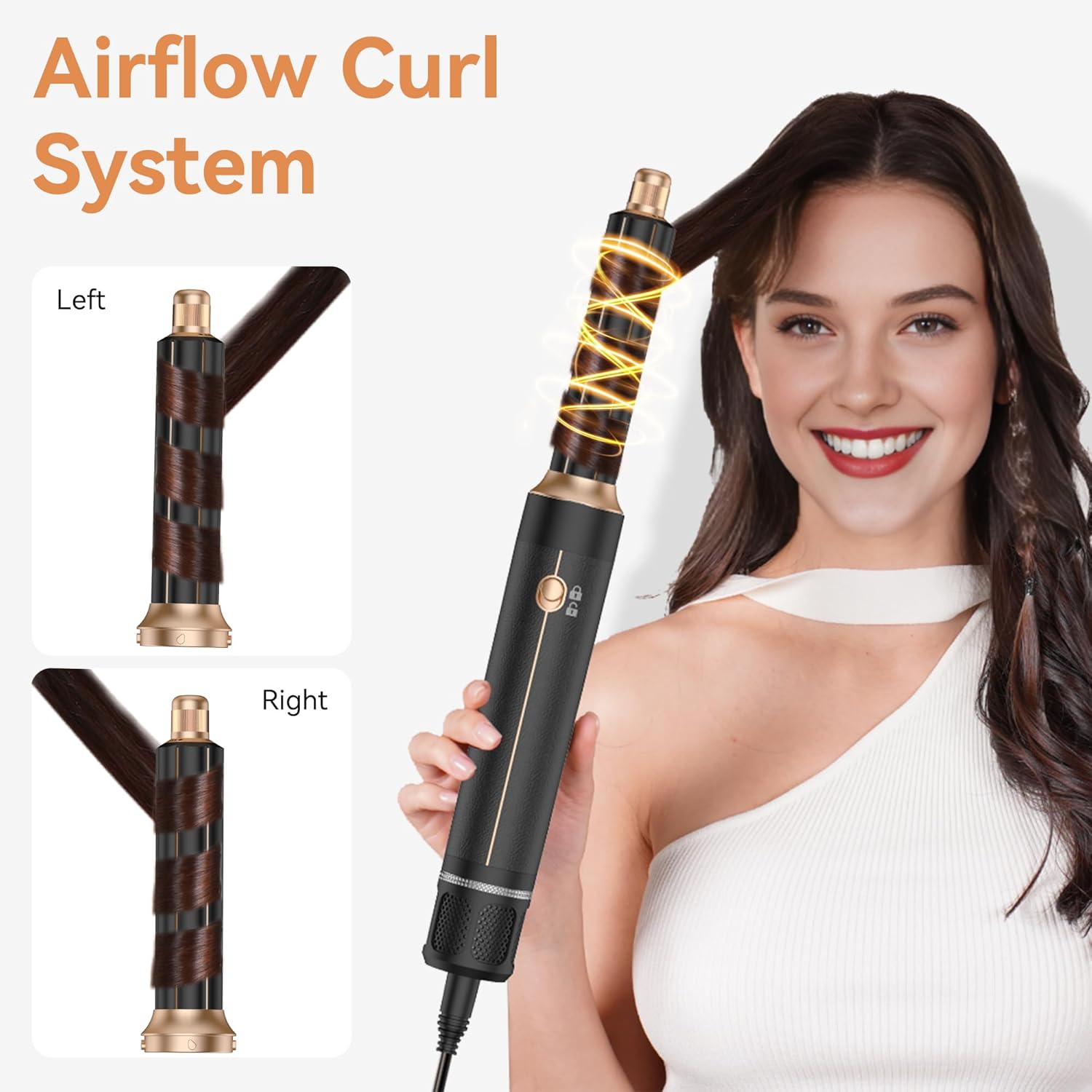 - POLITE NOTICE of AIR CURLING IRONS: 1. Hold a small section of hair about 10cm/3.93" from the end. 2. Bring the hair toward the barrel, hair will begin to wrap. 3. Must be Start wrap from the HAIR END. 4. Create tension and bring towards your head. 5. Hold in place for 15s or until dry. 6. Turn off and release. Curls from this lower-heat air styler may not last as long as those from traditional irons. Please consider this if curl longevity is important to you.