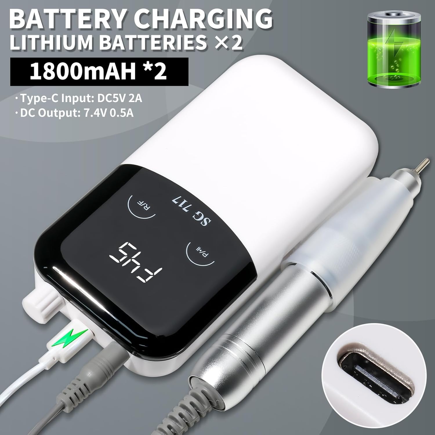 - 【Rechargeable Nail Drill】Our electric nail filer comes with 2*2000mAH battery, which can provide 10-12 hours straight working time only charges for about 2-3 hours.With the LCD screen, you can easily know the information such as rotating speed RPM, rotating direction and battery power. And makes it so much easier to us