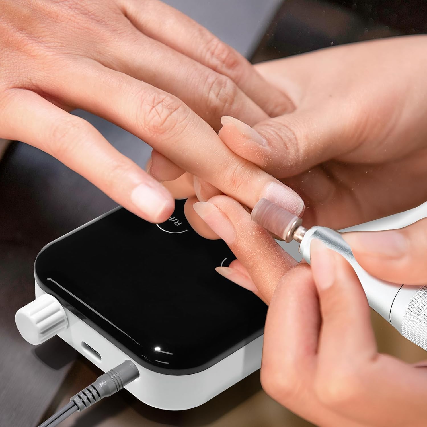 - 【High Speed up to 45000RPM】Our nail file electric equipped with a powerful upgrade motor bearing, which enables it working smoothly at a high and adjustable speed (0-45000RPM), just rotating the switch to choose the speed you need, easy to use and safe to control. It is an ideal nail drill machine for both professional technicians in-salon or beginners DIY at home
