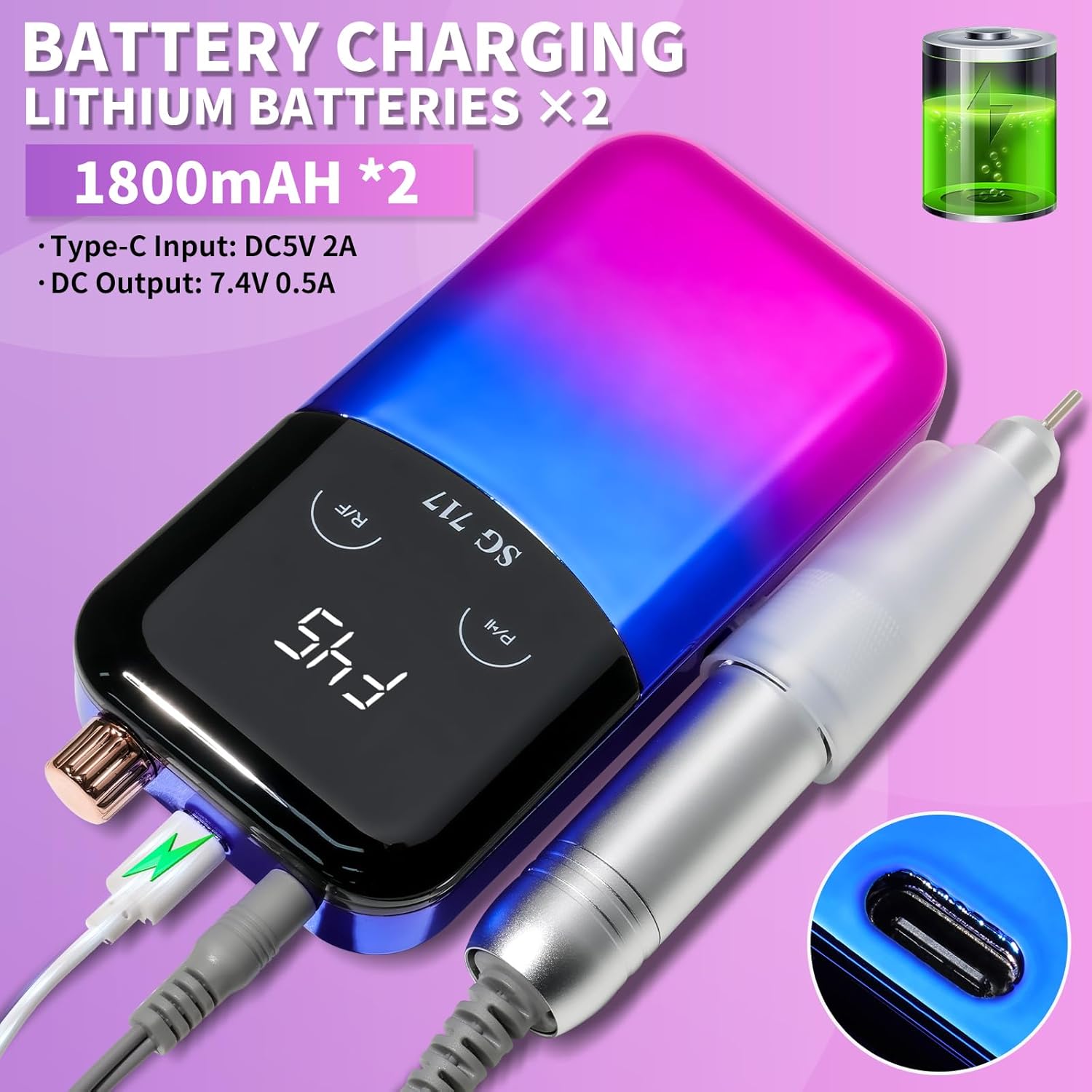 Professional Electric Nail Drill Machine,45000RPM Portable Rechargeable Efile Nail Drill Cordless,Electric Nail File Kit for Women (Gradient Blue)