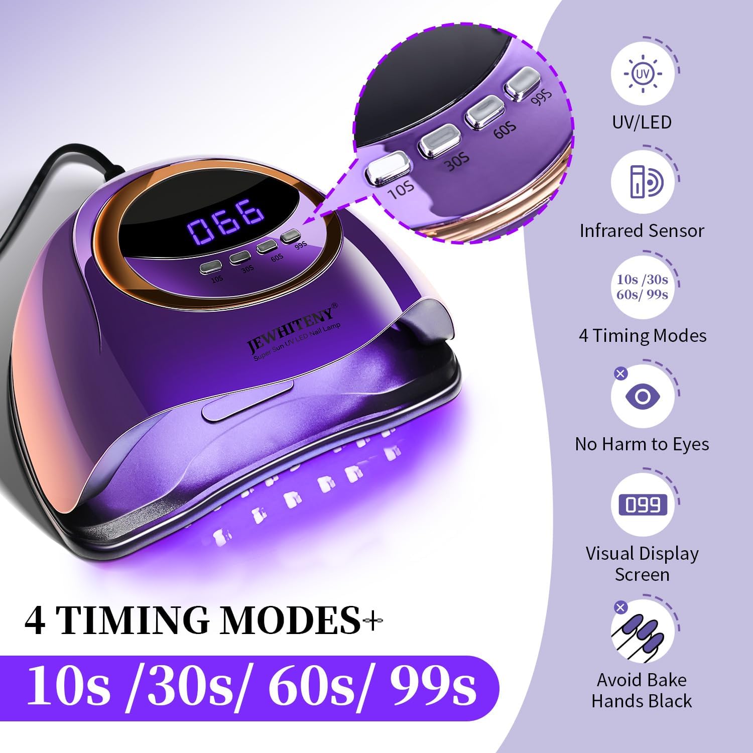 JEWHITENY Purple Fast U V Dryer for Gel Nail Polish:Gel Manicure U V Light with 4 Timers & Automatic Sensor Gel Nail Lamp Professional Curing LED Light