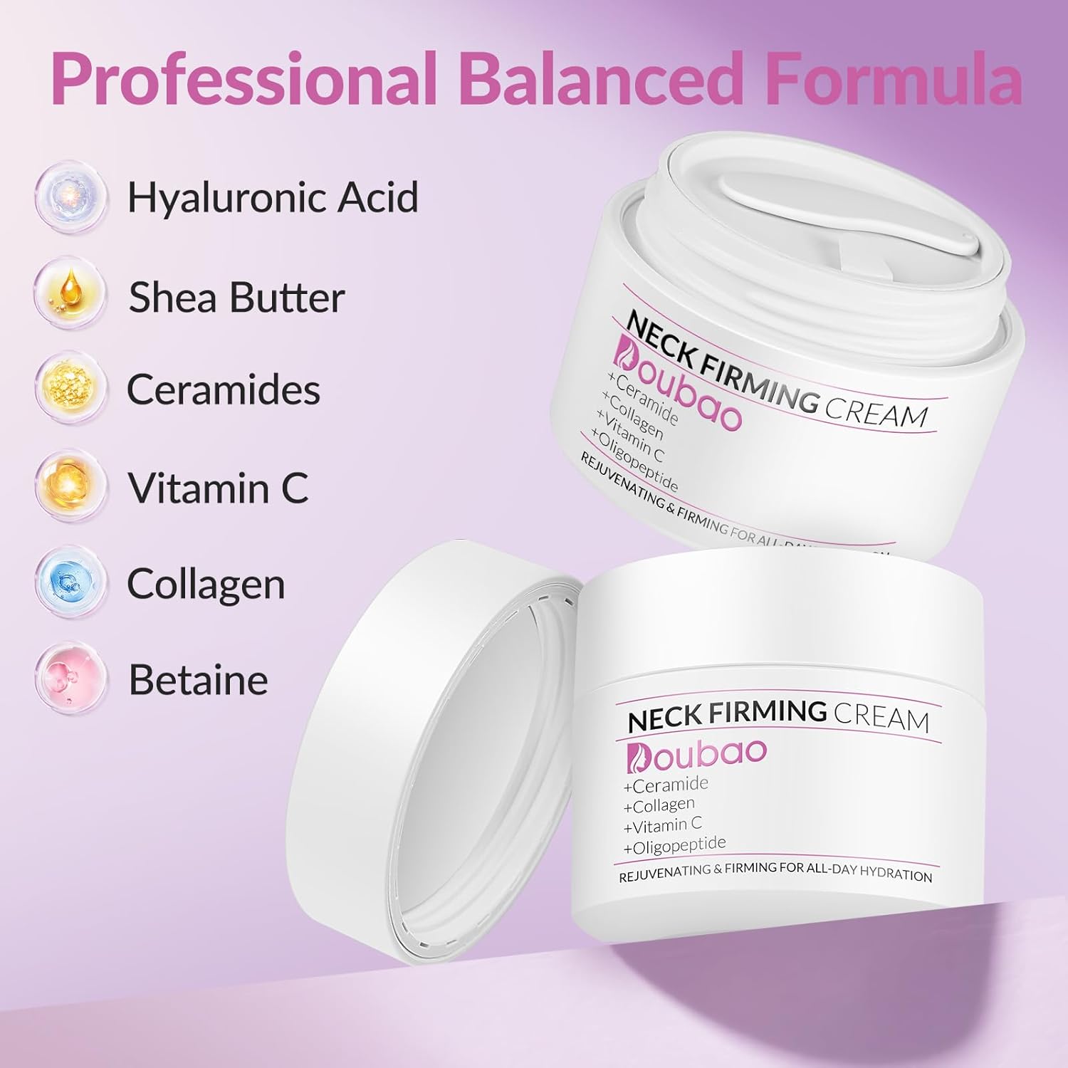- Firming and Tightening: Our neck firming creams are formulated to help firm and tighten the skin around the neck area, weaken the appearance of sagging, and enhances the overall contour of the neck and jawline, promoting a more youthful profile