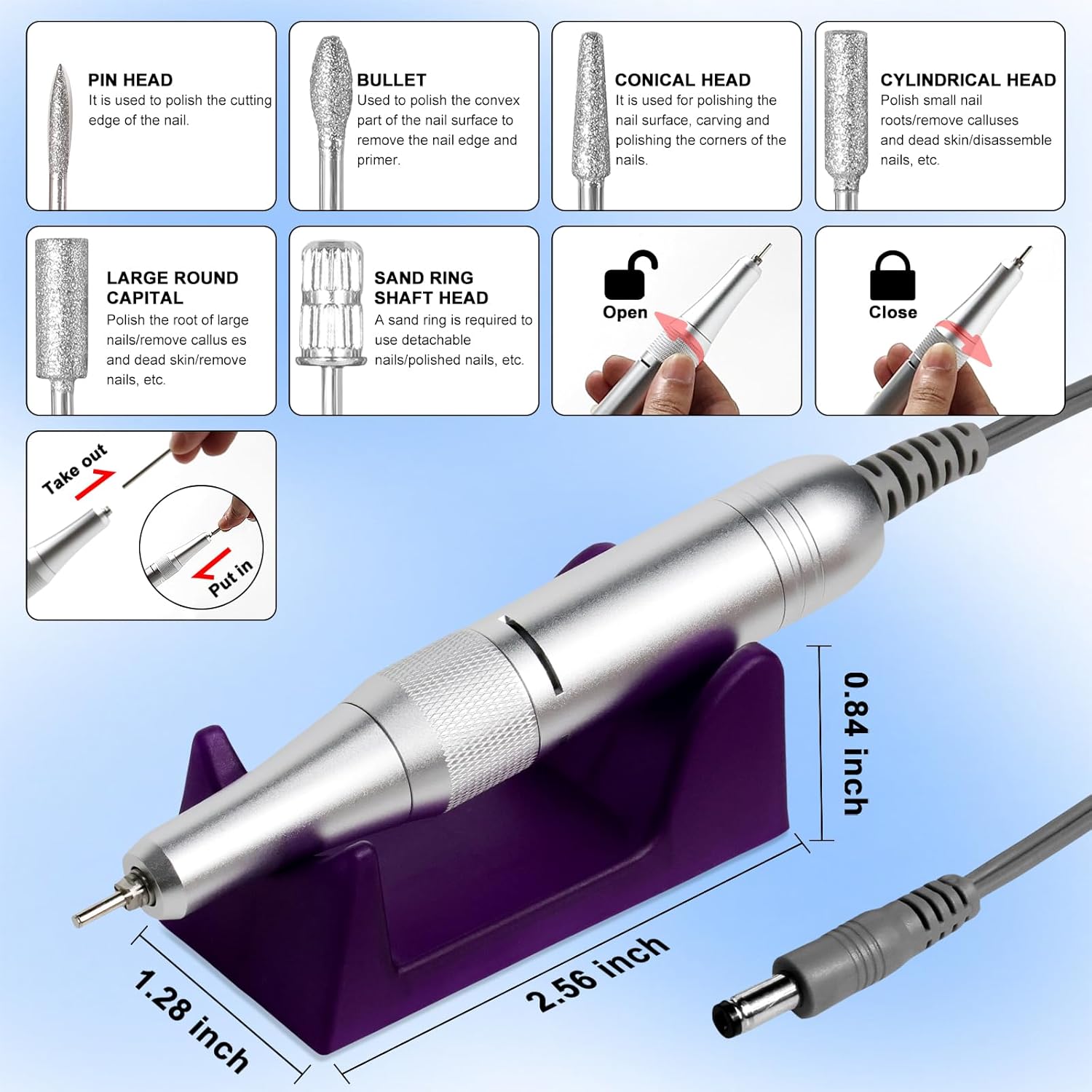 - Low Heat & Low Noise & Low Vibration:Quality aluminum alloy handpiece is made up of powerful yet quiet torque with smart heat dissipation and low vibration,the 45000RPM professional e-file is designed for professionals13 salon quality drill bits for fast and professional nail care services.despite its high speed,it operates with low vibration and noise,ensuring a comfortable and quiet experience for both the user and the client.