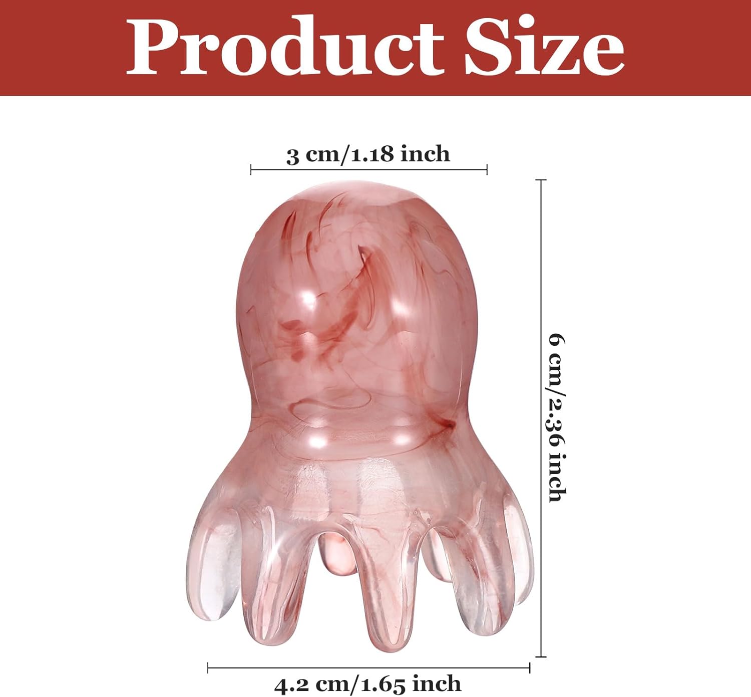 - Package Includes - This scalp massager set package contains 2 octopus head massagers, each of which is 4.2 cm/1.65 inches wide and 6 cm/2.36 inches high. This scalp massager hair growth can relieve scalp pressure, promote relaxation, and enhance overall health