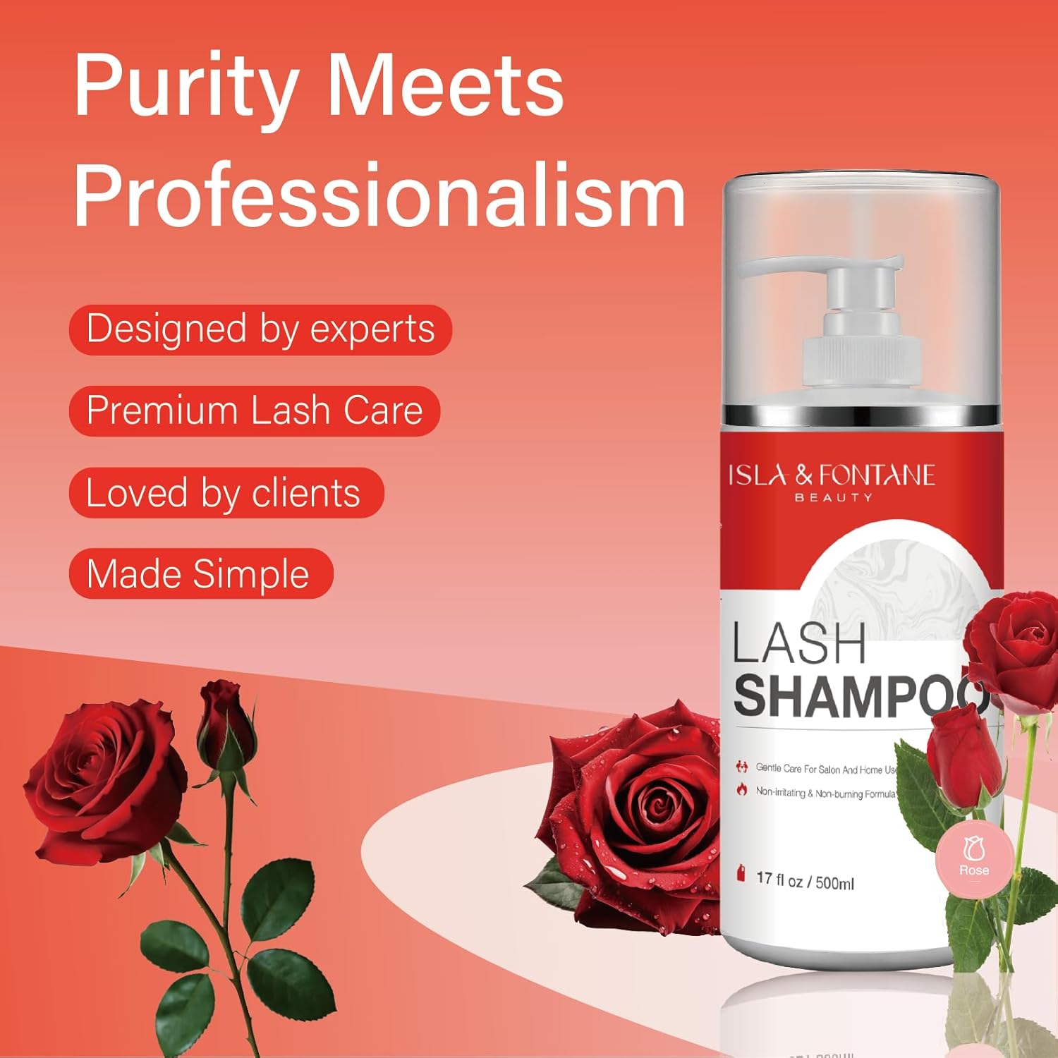 ISLA & FONTANE Lash Shampoo Bulk – Multi-Scent Series – 17 fl oz / 500ml | Gentle Eyelash Cleanser for Lash Extensions | Non-Irritating | Professional Lash Bath Foam For Salon And Home Use (Rose)