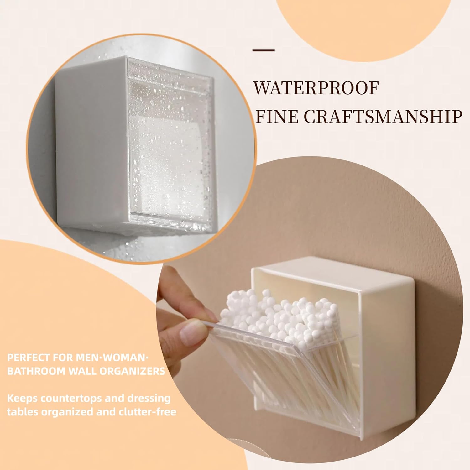- 【Durable and Stable】- These qtip holder dispensers are made of HIPS(High Impact Polystyrene) ,fine craftsmanship, smooth edges,easy to open and close,with sturdy double-sided tape,it won't fall off the wall.