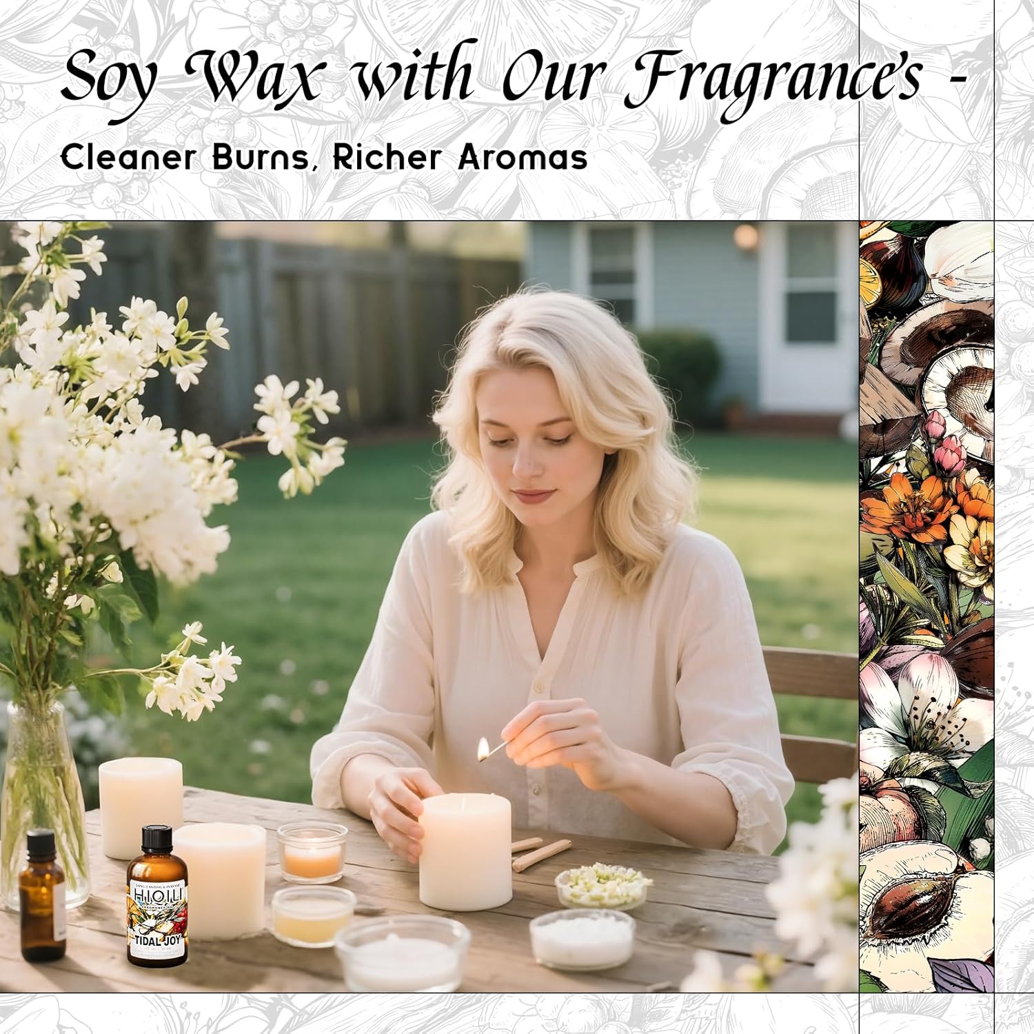 - DIY – Ideal for candle-making, soap-making, and perfume creation. Provides a rich fragrance in soy candles, melt-and-pour soaps, and other DIY home fragrance projects