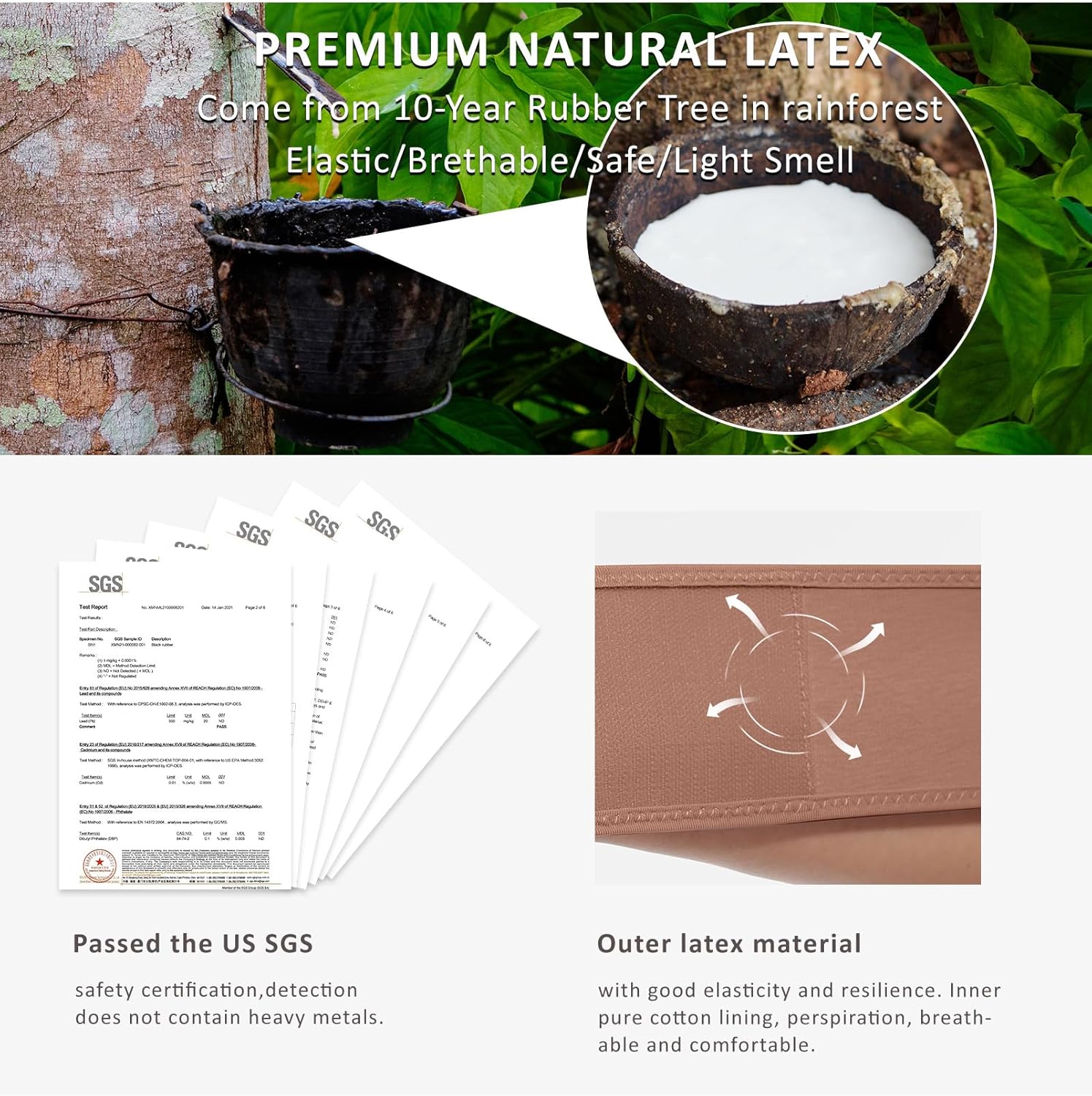 • Fabric type : Inner layer 96% Cotton+4% Spandex; Out layer natural latex