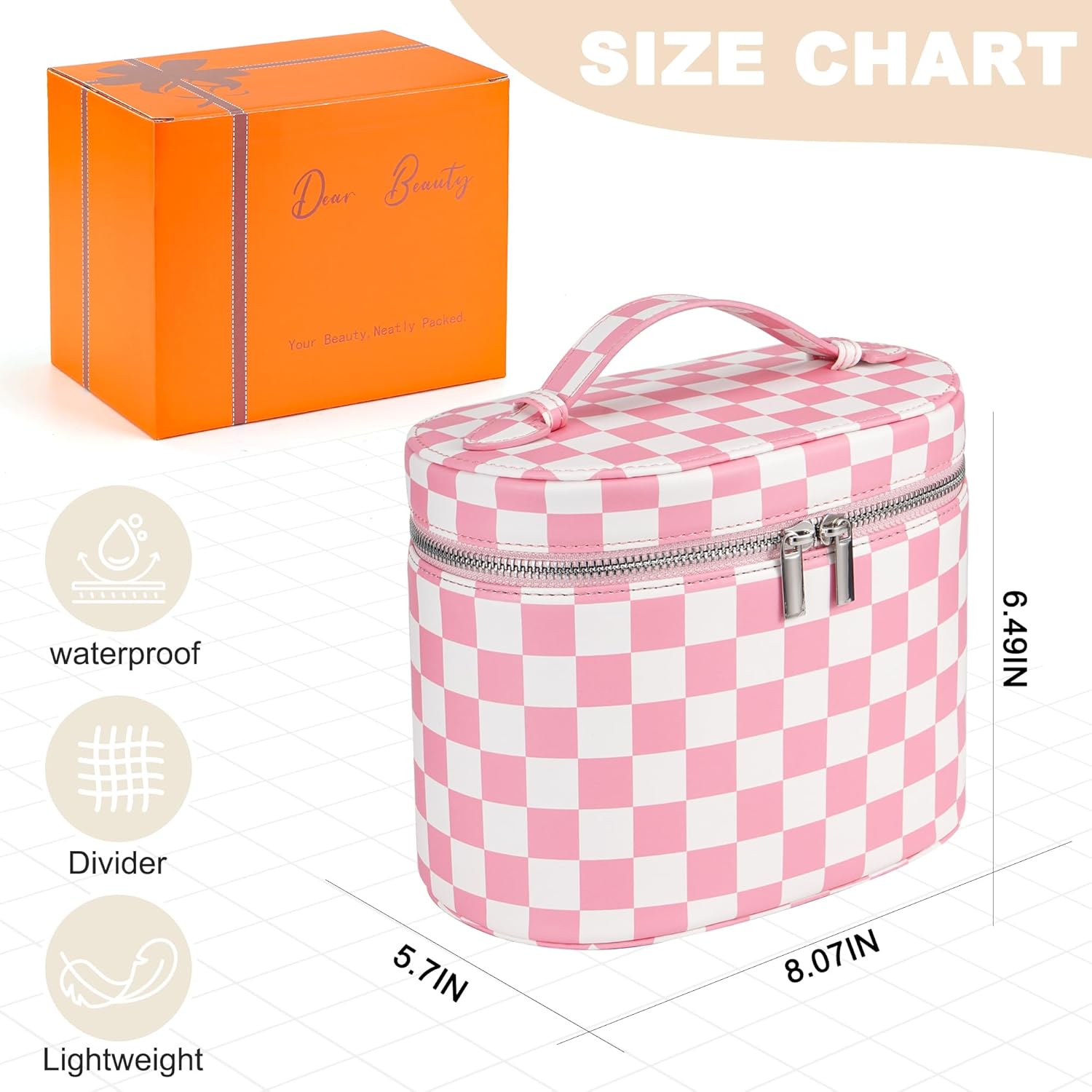 - Large Capacity: This makeup bag measures 8×6×6.5 inches, offering ample space for cosmetics, toiletries, and skincare. Its portable size makes it ideal for travel, while still holding full-size bottles, brushes, and daily essentials with ease.