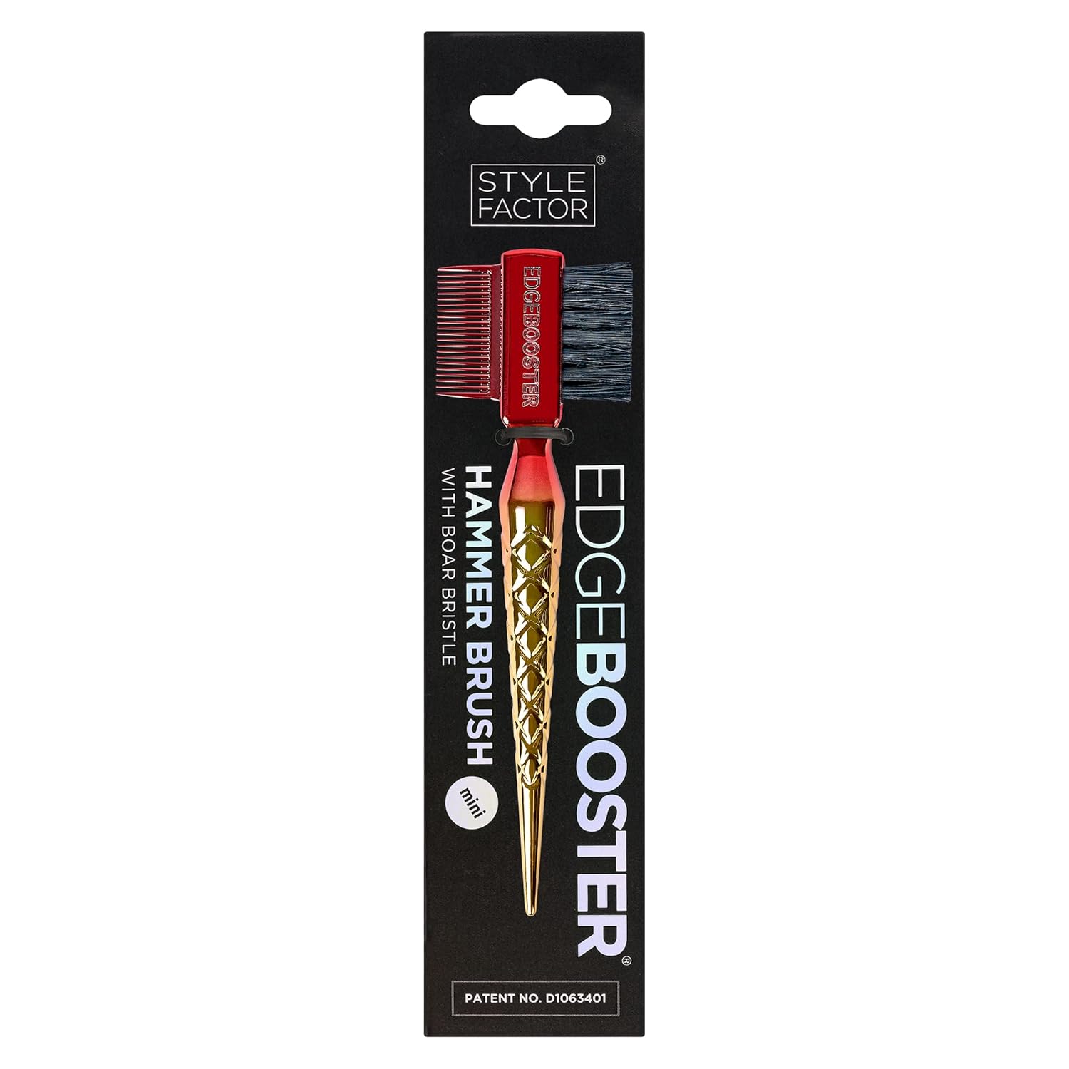 STYLE FACTOR EDGE BOOSTER® Hammer Brush Rat Tail– Double-Sided Edge Control Brush & Comb with Boar Bristles – For Edges, Slick Backs, Baby Hair Styling, and Taming Flyaways- Travel Size