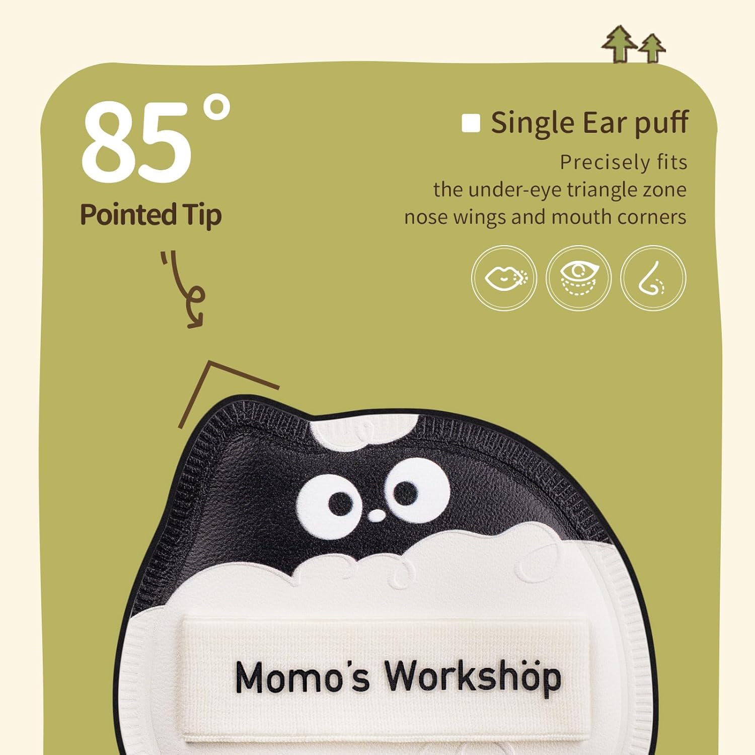 - 【Single-Ear Shape Dual-Function Design】 The Makeup Sponge's 85° pointed tip targets blemishes/under-eyes; the flat side blends foundation seamlessly—no tool switching needed.