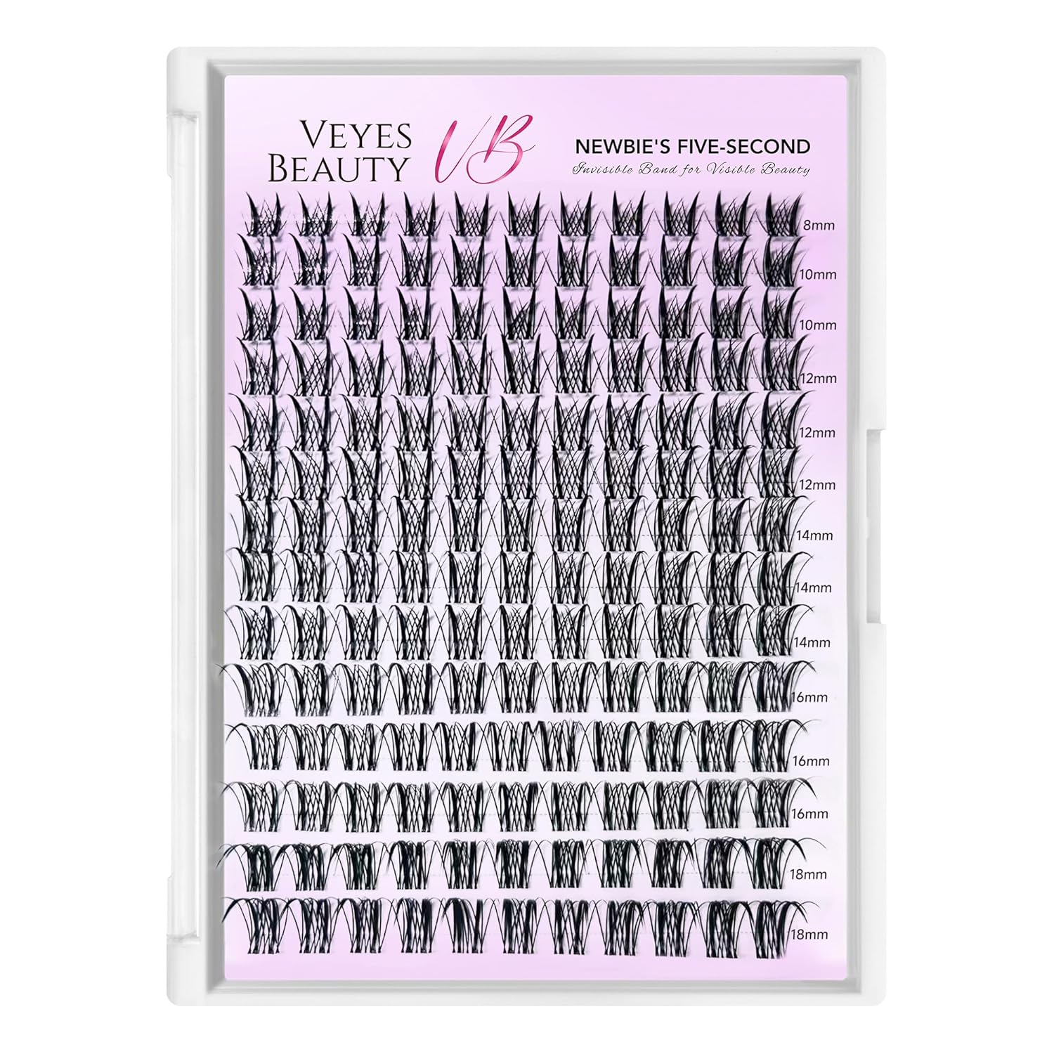 VEYESBEAUTY Lash Clusters Kit Eyelash Extensions Thin & Invisible Band DIY Individual False Eyelashes Newbie's Five-Second Series Lash Tray for Self-application, Sylph Lashes 8-18mm Mixed Length