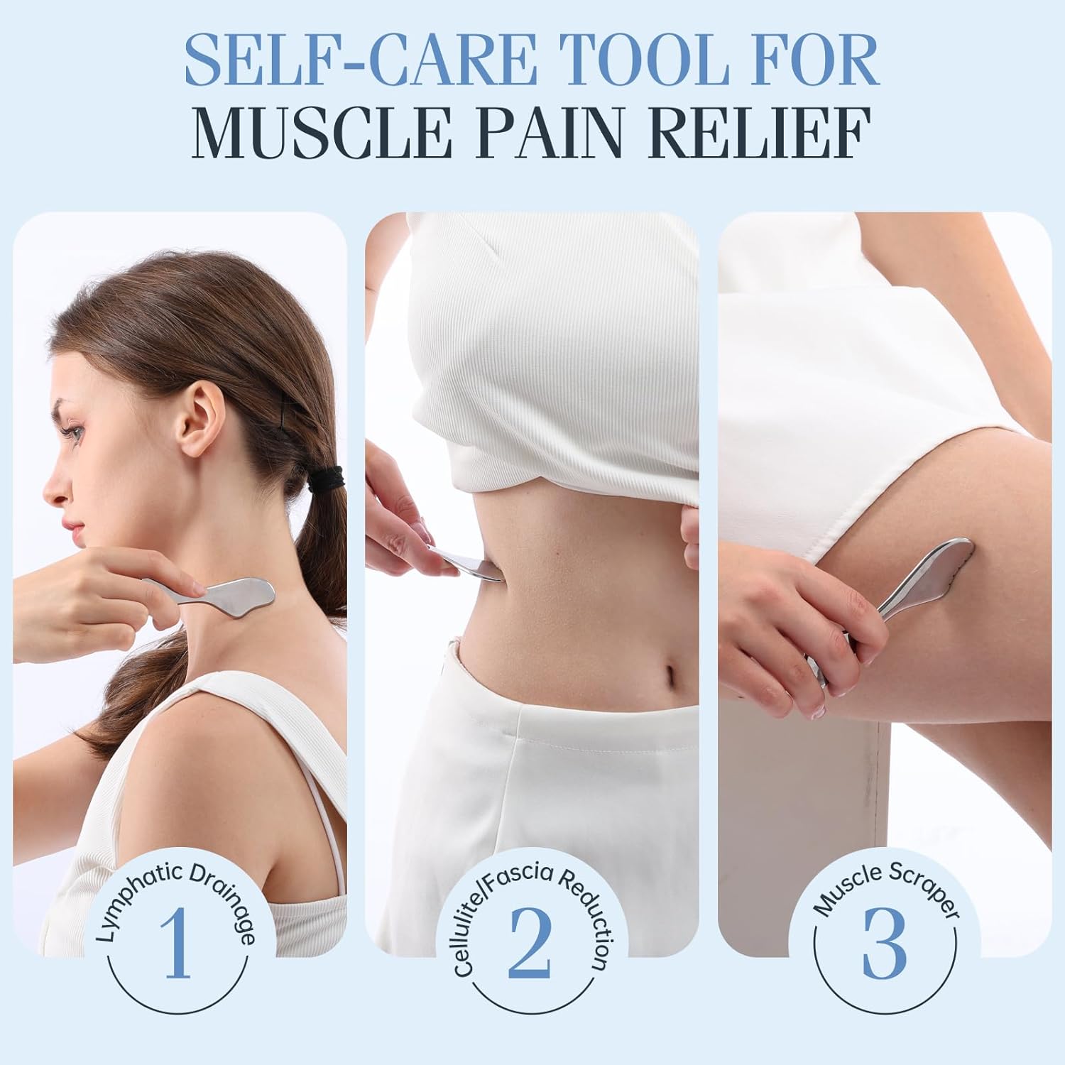 - 【Erase Fine Lines & Boost Radiance】- Metal Gua Sha tool = Instant Facelift!Glide our gua sha facial tool with serum/oil to lift + firm skin. Stimulates lymphatic drainage to reduce puffiness while fighting wrinkles. See visible glow in a month!