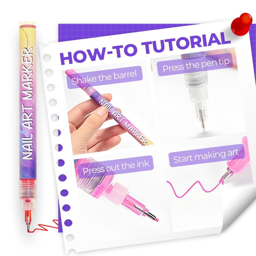 - 【Easy DIY Nail Patterns】These nail markers for nail art are ideal for creating intricate patterns at home. Achieve everything from simple dots and stripes to detailed designs like flowers and animals with the nail polish markers set for beginners and nail art enthusiasts.