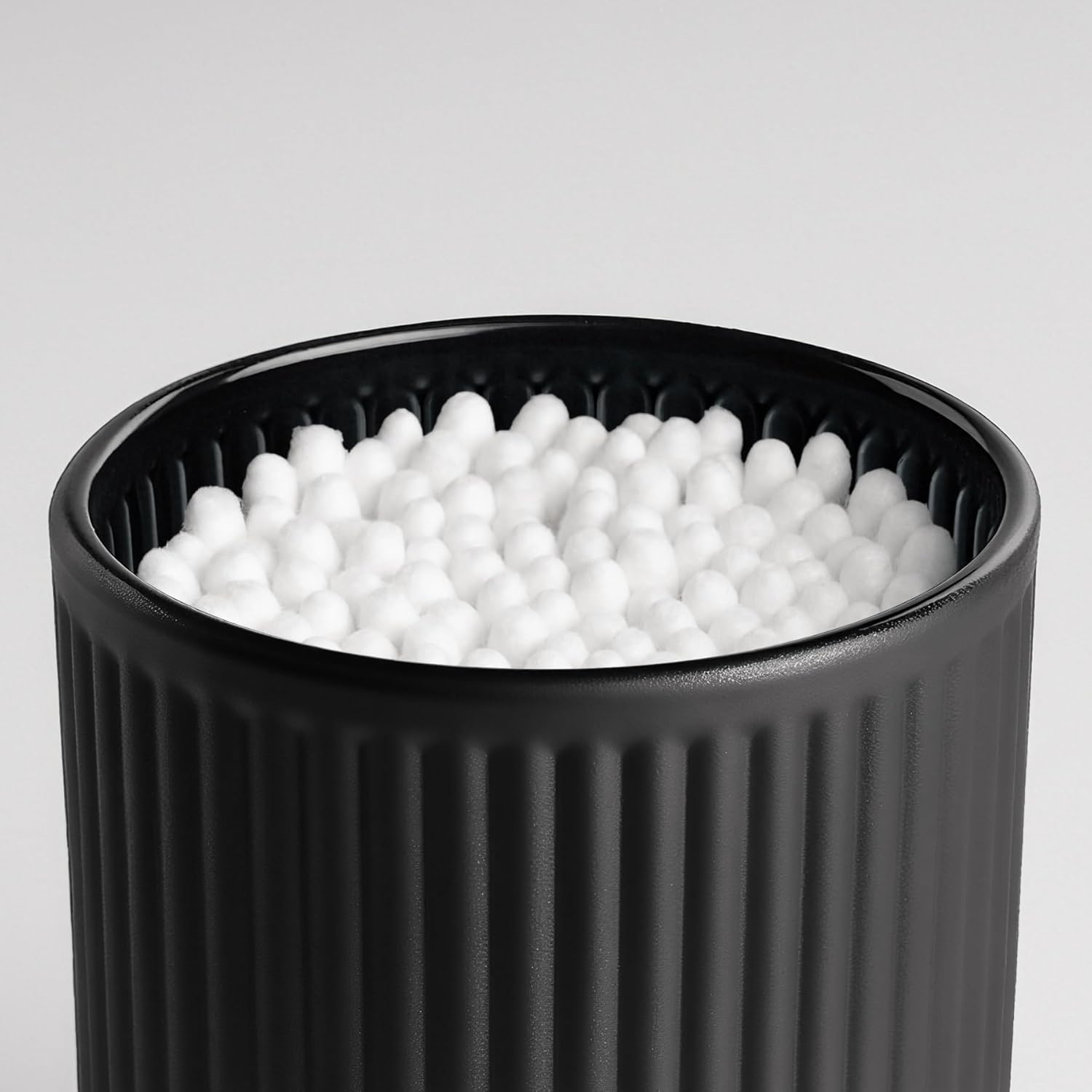 - Bathroom Storage Q-Tip Holder:This 9.8 oz cotton swab jar with lid (3.9 x 3.5 in) is perfect for holding qtips,cotton swabs,balls,pads,bath salts,floss picks. A simple, stylish way to keep your bathroom or vanity neat and clutter-free.