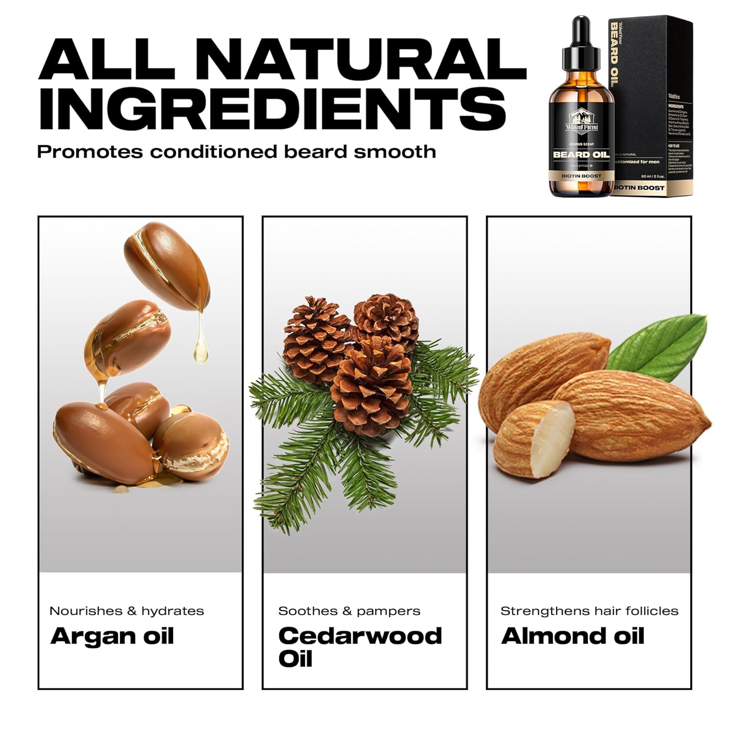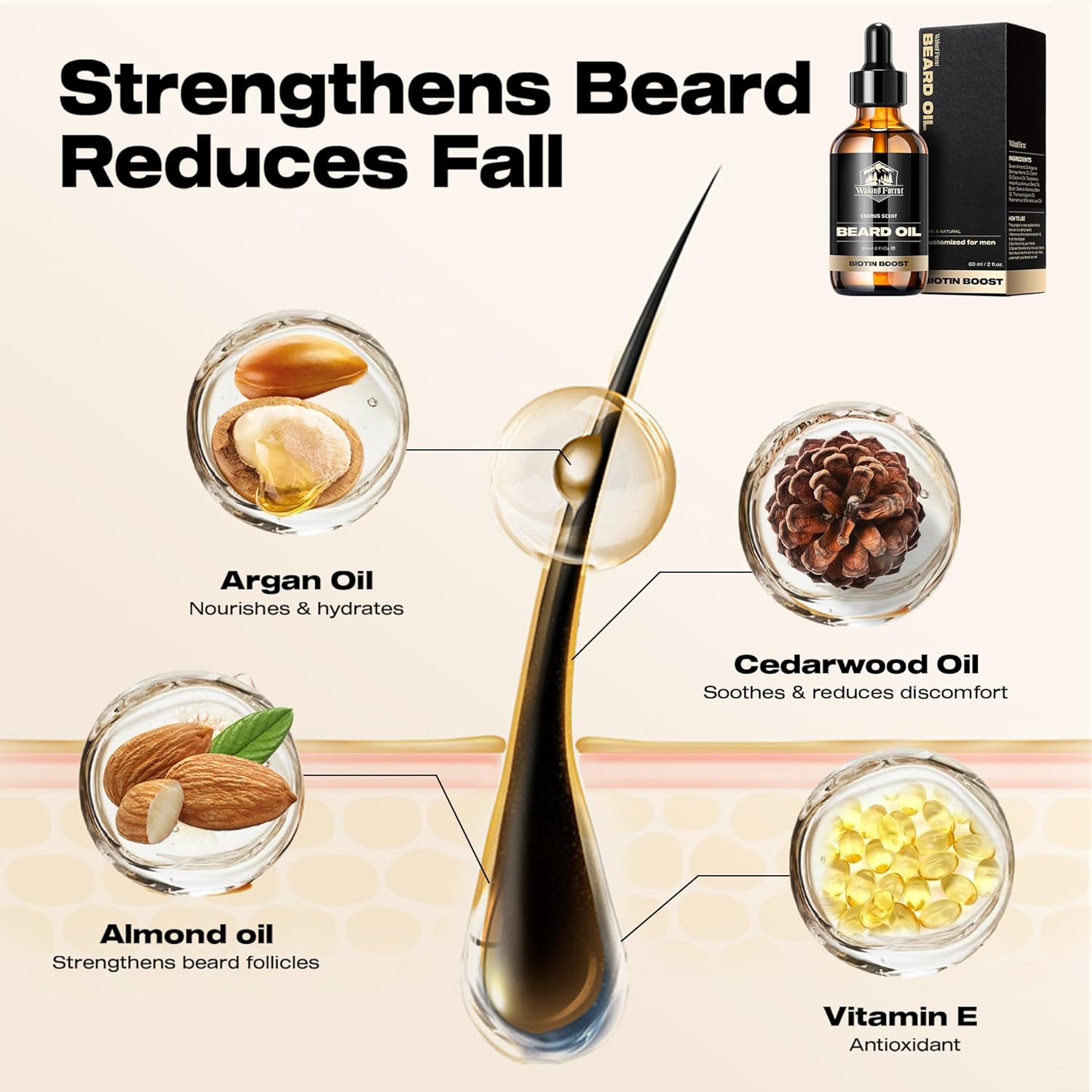 Waking Forest Beard Oil - Biotin Beard Oil for Men Thicker Beard with Vitamin E, Rosemary, Castor Mustache Oil for Black Men, Softens & Strengthens Beard Care Oil (Cedar 2oz)