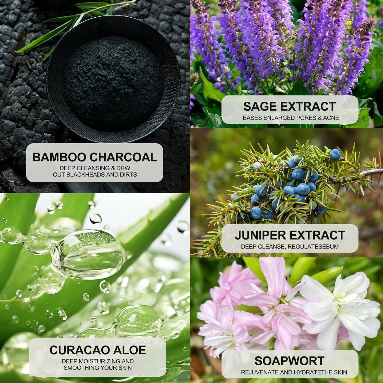 - 🌿Radiant Skin: Infused with nourishing ingredients like aloe vera, salvia, juniper, and soapwort, this activated charcoal black head remover for face removes excess oil, balances skin, and helps prevent blackhead formation. It deeply cleanses and nourishes, leaving your skin bright, vibrant, and radiantly refreshed.