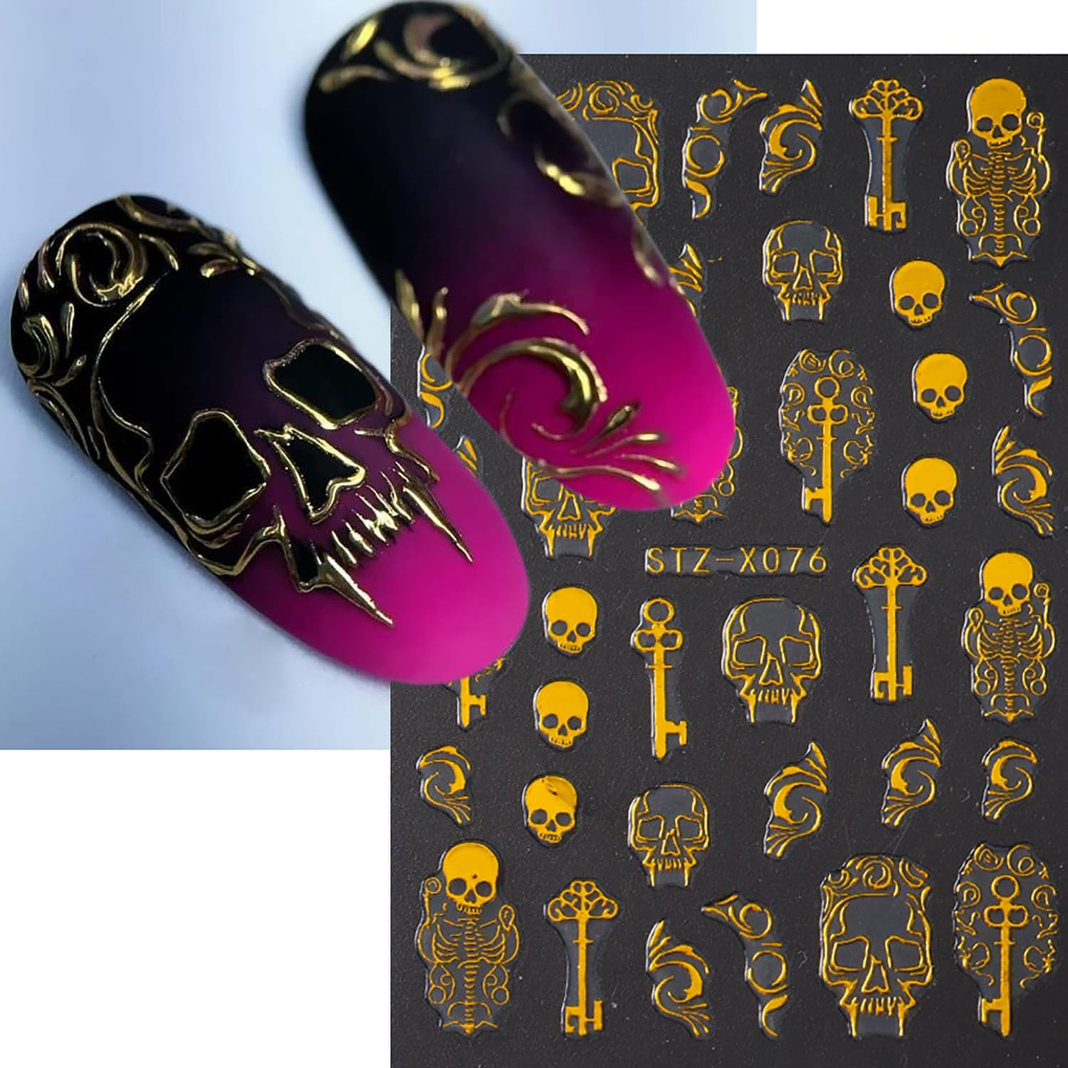 - Package Contain: You will receive 6 sheets of Halloween nail art decals golden skull spider web ghosts design, catering to your rich imagination for daily nail DIY and uplifting your mood